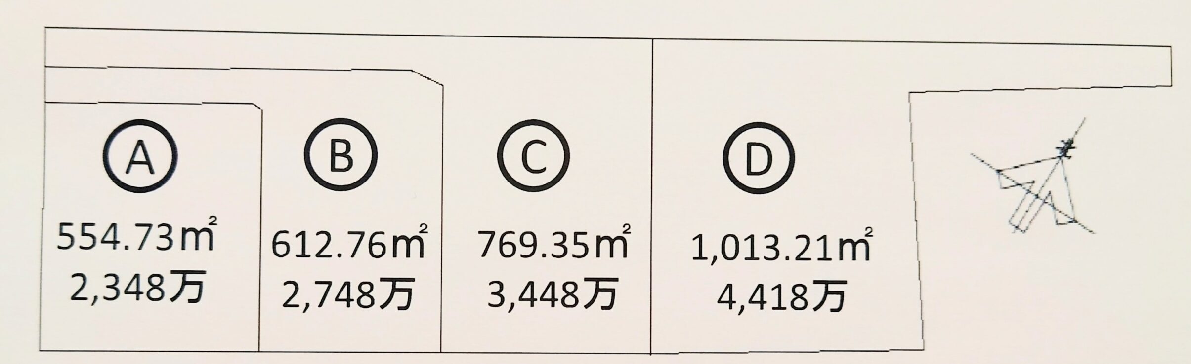 価格 2,348万円 ~ 4,418万円 物件タイプ 土地 種別 売買 取引態様 媒介 建物面積 ー 土地面積 554.73m² (約167坪)~ 1.013.21㎡(約306坪) 用途地域 第一種低層住居専用地域 緩衝地域
