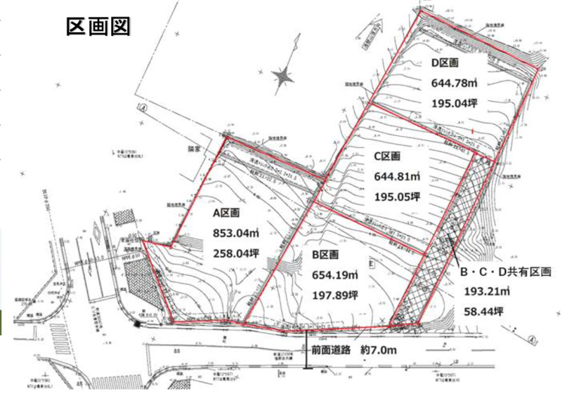 土地面積 | 644.78m²(195.04坪)〜853.04m²(258.04坪) |